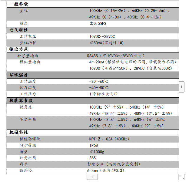 ⑥超声波传感器周围一定范围内不能有任何障碍物,具体请咨询公司技术人员。